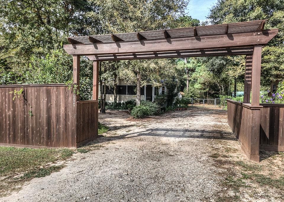 Almost 1/2 lot developed by a happy-gardener homeowner. Lots of butterfly plants, numerous assorted fruit producing trees, bay tree & large beautiful hardwoods. Fenced yard w/privacy along front & driveway gate. Storage shed in back. Large enclosed porch to enjoy nature's beauty. This well-cared for home offers island kitchen, split floor plan, amazing master bath w/separate tub & shower. Great master closet.