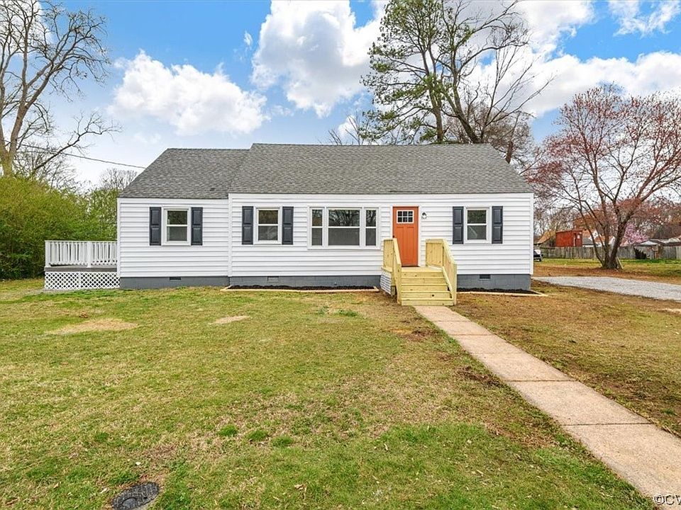 You're going to LOVE this fully renovated 3 bedroom, 2 bath Cape style home. This cute house has a Newer roof, New windows, New HVAC system, Newer water heater, updated kitchen with Granite counter-tops and freshly updated bathrooms. The primary bathroom has a new fiberglass tub/shower combo, new vanity, new toilet, and new floor. The hall bath has a freshly resurfaced tub, new vanity, new toilet and new flooring. The kitchen features freshly painted Newer cabinets, New Granite Countertops, New Stainless-Steel Stove, New LVP Flooring and New Double Doors that Lead to the Large rear Porch overlooking the ample yard. New paint and flooring throughout the entire home New Windows and New Doors. The crawlspace has a new vapor barrier, all New insulation and has New Beams and Subfloor. The house sits on a nicely landscaped flat lot with a 2 large decks and a New Gravel driveway. Great location right off 95 and Chippenham, Don't Miss your Opportunity to Own this GREAT home!!