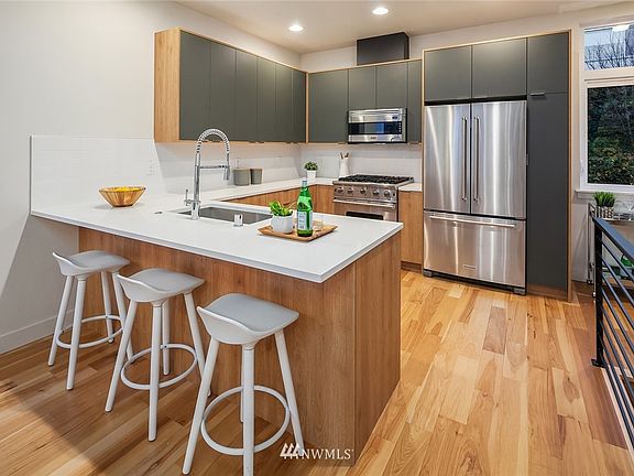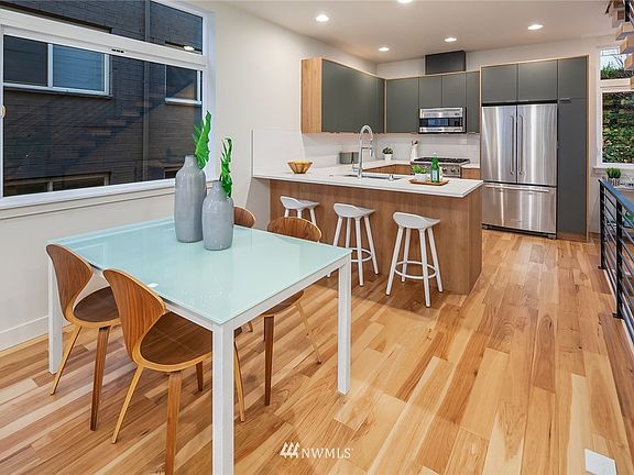 ~The Edge~Proudly designed by top premier home builder Gamut360 in a highly sought-after location of Eastlake. Enjoy exquisite brick facade w/cedar siding & interior finishes to really get excited about. Sophisticated minimalist color scheme,3/4 hardwoods surround,custom cabinetry,gorgeous kitchen w/high-end appliances,gas cook-top & AC,top'd off w/private roof top deck & built in wet bar. Breathtaking views of city skyline & mountains. Near top-rated eateries,Downtown & South Lake Union, HURRY!