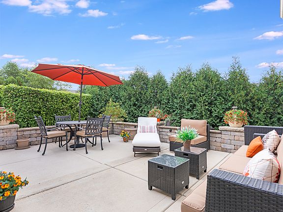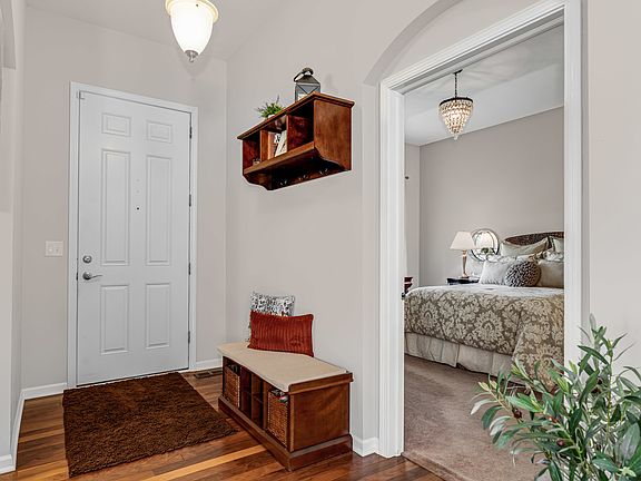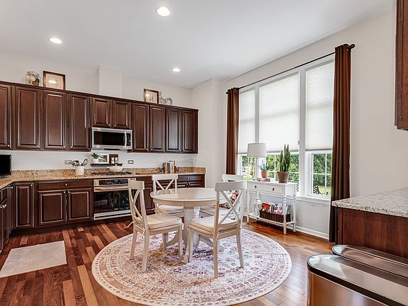 Beautiful Former Model Ranch Townhome in Carillon Club Discover this stunning ranch-style end-unit townhome in the highly sought-after 55+ community of Carillon Club. Once a former model home, it showcases premium upgrades and thoughtful design throughout. Offering 2 bedrooms, 2 full bathrooms, and a deep-pour finished basement, this home provides both style and functionality. The main level features an open, light-filled layout with hardwood floors. The spacious kitchen is designed for both cooking and entertaining, complete with a center island, built-in desk, 42" cherry cabinets, granite countertops, and abundant workspace. The inviting primary suite boasts a private bath with dual sinks, a handicap accessible tub, and a separate shower. The second bedroom is set apart for privacy, ideal for guests or an office. The finished basement expands your living space with a large recreation room, a dedicated craft room, and generous storage areas. Outside boasts an oversized patio with professional landscaping that offers privacy. Located neat the club house and family pool and across the street from a beautiful pond. Updates Include: 2022 Walk-in tub in the primary suite, chair lift for basement stairs, updated walk in shower in second bathroom and tankless water heater. 2023 New refrigerator, oven, dishwasher and microwave. 2021 -New furnace and AC. 2017 Finishes basement with craft area, new kitchen faucet. 2016 Patio extended and professional landscaping, new light fixture in the dining room and granite counters in the kitchen. Move-in ready, this turnkey home offers comfort, convenience, and community living at its finest.
