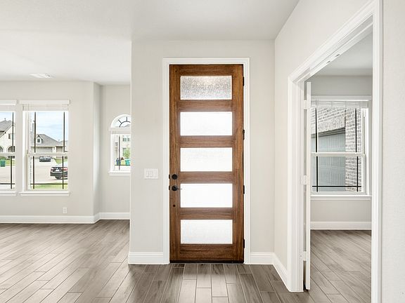 BRAND NEW & NEVER LIVED IN BEFORE! Bloomfield's Seaberry floor plan is a stunning two-story home on a cul-de-sac lot with a swing garage and a generously sized yard, offering 5 spacious bedrooms and 4 baths. The open foyer welcomes you with an elegant Formal Dining area and a private Study enclosed by dual glass and wrought iron doors, while a Butler’s Pantry provides seamless access to the Deluxe Kitchen—an elevated culinary space featuring custom cabinetry, Quartz and Granite counters, pot and pan drawers beneath the gas cooktop, a striking wood vent hood, and all gas stainless steel appliances. This chef’s dream flows effortlessly into the expansive Family Room, where a soaring 18’ ceiling, picture windows, and a dramatic Stone-to-Ceiling Fireplace with a cedar mantel and gas logs create a warm yet refined ambiance. Throughout the downstairs, Wood-look Tile floors extend across all common areas for a cohesive style and durability. The Primary Suite is a serene retreat with a soaking tub, separate shower, and a roomy L-shaped vanity, while thoughtful touches like window seats and a nearby mud room add everyday convenience. Upstairs, a spacious Game Room ensures plenty of entertainment space for family and guests. The home’s stately brick and stone façade is further elevated by an 8' custom front door with glass and wrought iron detailing, full landscaping with stone-edged flower beds, and a tankless water heater, all combining to deliver both beauty and performance inside and out. Call or visit today!