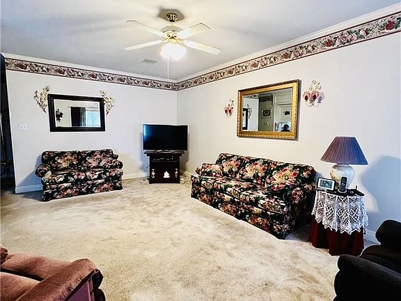 Walk into this open floor plan home. Carry on conversations easily from the kitchen to the living room area. Delightful floor plan-nice primary bedroom with ample sized bath. There is plenty of storage with extra cabinets and storage room in the garage. This home is cute as a button.