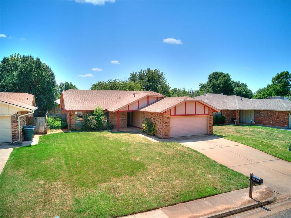 Welcome to 2708 Greenfield DR, Edmond, this single-family home is ready to embrace its new homeowners! Imagine a spacious living area with beamed ceiling, and centralized brick fireplace for those crisp fall days and chilly winter nights all accented white bookcases for your decor delight. This room then flows to a spacious oversized kitchen with eat in area, lots of counter space, tile counter tops, smooth top electric built in stove and double ovens. The dining area itself is spacious for a large gathering. The home also features three bedrooms with spacious closests, as well as two full bathrooms. This home was built in the 80s but has been updated in kitchen and baths. This home is nestled within the Fairfield community with great access to Edmond's finest schools. Close to grocery shopping and more! This home has a spacious yard, not too much to care for, but just enough for fur friends or outside enjoyment. Come see how this homes layout offers a lot for its size! Can accomodate a quick closing !