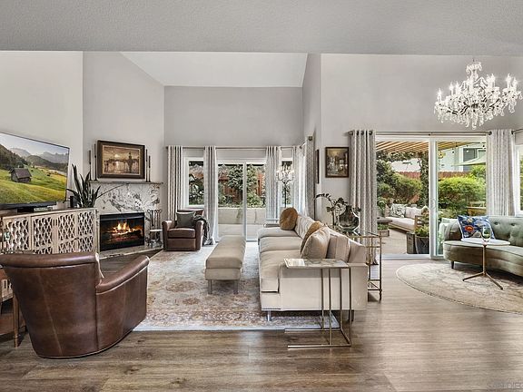 Stunning four bedroom, three bath, garden view remodeled home with extensive upgrades throughout. Gorgeous and expansive updated kitchen with shaker cabinets, quartz countertops and stainless steel appliances. Beautiful open breakfast nook overlooks the private courtyard. Sellers have added over $200,000 in upgrades including newer roof and upgraded plumbing, heating, and air conditioning! Wonderful wine room near entry before you walk into the vaulted living room with a stunning fireplace. Downstairs bedroom and a newly upgraded bathroom with luxury stone vanity and tiled tub/shower. Sliding glass doors lead you out to a beautiful patio with a cozy spa tub. Spacious primary suite with amazing steam shower, dual split quartz vanities, gorgeous new quartz and tile finishes, and large view private balcony. Additional upstairs bath offers upgraded quartz counters and large shower. The picturesque front, side and backyard resemble a relaxing paradise, complete with fountains, flowing ponds and beautiful landscaping. The home is a must see, coastal dream close to shopping, 78 freeway and short bike ride to the beach.