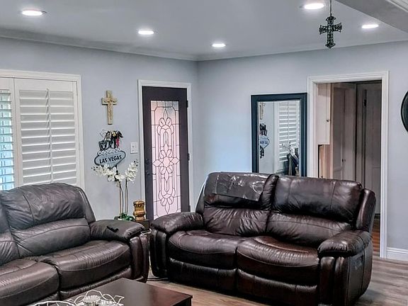 Welcome to one of Lakewood's Most Popular Neighborhoods . Beautiful updated home in the desirable area of Lakewood Mutals. Updated 3 bedroom 1.5 bath home, close to schools, shopping and walking distance to golf course. New luxury vinyl flooring installed. Updated kitchen with appliances stove and fridge. Updated laundry room with washer and dryer. Central air and heat. Take advantage of Pool Home, rarely available. This family home is waiting for you! Make this newly upgraded home, yours. Kitchen with White cabinets, Quartz counter tops, Stove, Fridge and garbage disposal. Dining Room and Living room with newly installed Recessed LED lighting, smooth ceilings and Laminated wood like floors. Two car garage with lots of storage. Long Driveway for the extra cars. Cinder block walls surround property Front and back yard water free green lawn turf.
