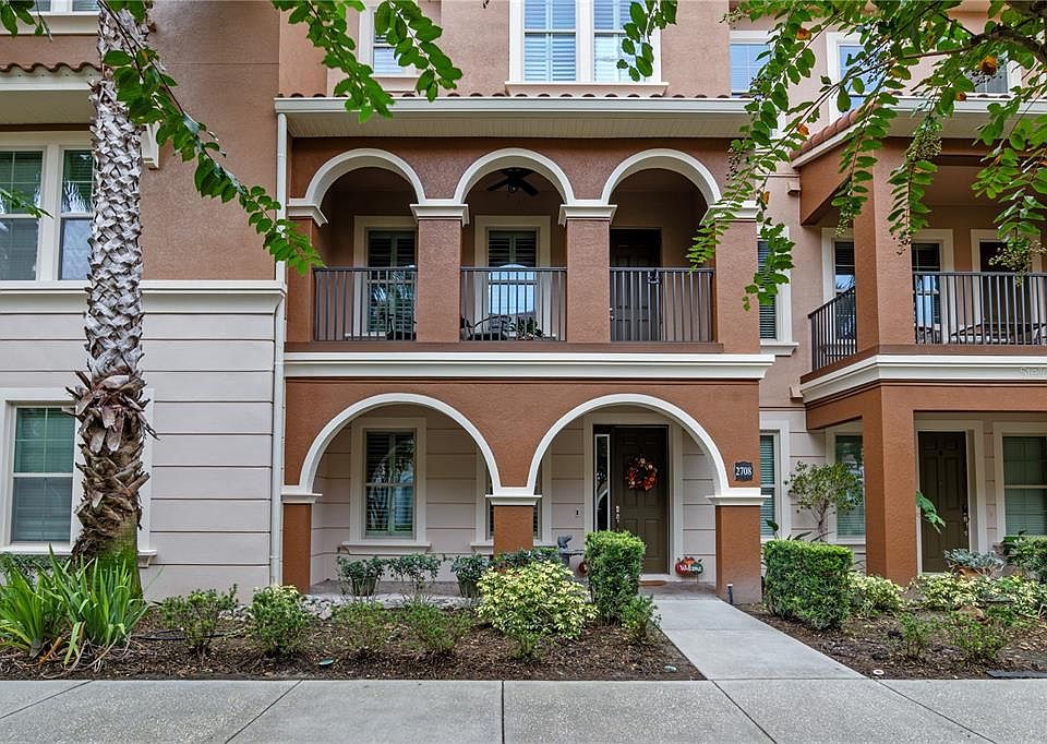 Beautiful Fountain Parke townhouse with DRIVEWAY, COURTYARD BALCONY VIEWS, and SO MANY UPGRADES! Rare driveway has room to park two cars comfortably, a huge upgrade in this neighborhood, and so convenient. A NEW LENNOX HVAC system, and whole home WATER SOFTENER will provide comfort for years to come. This home has 3 large bedrooms, all with their own bathrooms. The main floor has an open concept living room/dining/kitchen design, perfect for entertaining. Added crown moulding, wrought iron balusters, plantation shutters, and upgraded appliances give this home a custom designer look, and open views on either side flood the rooms with light and greenery. A large balcony off the living room offers plenty of room for outdoor seating, to enjoy the beautifully landscaped courtyard. All of this within the luxury resort style community of Fountain Parke. The architecture, landscaping, and amenities this neighborhood offers are next level, making it one of the nicest communities in Central Florida. Amenities include 24 hour guard gate, resort style Mediterranean pool and spa, fitness facilities, tennis and pickleball court, large fenced in dog park, putting green, and a clubhouse with pool table. The neighborhood is well located, with easy access to shops and restaurants, the Seminole Bike Trail, as well as I4 and the Central Florida Greeneway. Book your showing today!