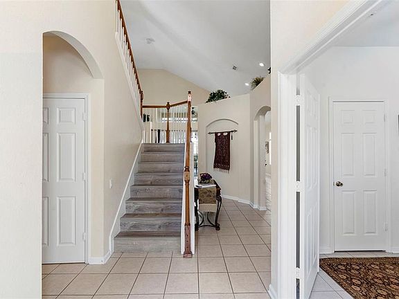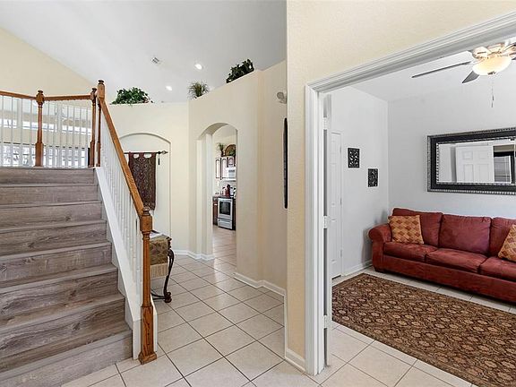 Discover the ideal blend of comfort, space, and resort-style living in this beautifully designed 5-bedroom, 3.5-bath pool home located in one of Kissimmee’s most desirable gated resort communities. The first floor features two spacious bedrooms, including a large primary suite with elegant wood furnishings, a generous walk-in closet, and a bright ensuite bath offering double vanities, a soaking tub, a separate glass-enclosed shower, and great natural light. The second downstairs bedroom includes its own convenient access to a full bath. Upstairs, three additional guest-friendly bedrooms—each thoughtfully decorated and well-lit—provide plenty of space for family and visitors. The open-concept main living area boasts vaulted ceilings and seamless views of the screened-in patio and private heated pool with spa. The garage has been converted into a game room for added entertainment value. Outside, enjoy a covered lanai and an expansive screened pool deck perfect for year-round relaxation. This secure 24/7 gated community offers world-class amenities including a resort-style pool with water slides, fitness center, game room, and private movie theater. All just minutes from Disney, dining, shopping, and Orlando’s top attractions—ideal for a primary residence, vacation retreat, or strong short-term rental investment. Turnkey and ready to enjoy!
