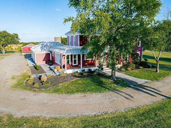 Established in 1895, this one of a kind classic Americana four-square features 5 bedrooms (+2 bonus rooms), a beautifully remodeled kitchen with custom upgrades galore, and a modern mudroom entry that flows into a spacious two-car attached garage with an additional bonus room or a quiet work-from-home space. The whole-house renovation was energy-efficiency focused: Two new zoned geothermal heat pumps/HVAC, tankless on-demand water heater, all new Pella windows, high-density spray foam attic insulation, a huge main floor sunroom addition, two enclosed concrete basement egresses, premium insulated siding, a lifetime insulated metal roof, and new seamless gutters. Additionally, stained & stamped concrete perimeter walkways and a huge back patio were poured, leading up to a new composite deck and completely rebuilt charming front covered porch for enjoying beautiful Kansas sunsets. External dwellings/income potential- In 2015, the 33x40 east pole barn was extensively converted into a subtle yet quaint barn dominium/guest house that will WOW your friends and family. It includes an additional 894 sqft of living space, kitchen, laundry room/ mud room, plus an additonal garage. The 34x42 open-span style north barn with half bath and ample parking lot with its own street access has hosted team barbecues, family movie nights, school float construction, weddings/receptions, and home-based business operations. The 25x20 “fort” has four separate rooms for gardening storage, a built-in chicken coop, and locking tool crib plus a second story hayloft for overflow storage or overnight glamping. The 32x24 former tack/milking barn has been primarily used for overflow storage yet has repurpose potential into a toy garage or crafting workshop. The 27x18 building across from the main garage serves as an overflow three car covered garage. Other unique property features- A nearly one-acre pond is constantly refreshed from the geothermal well, creating a year-round waterfowl sanctuary and is adjacent to a sportsman’s target range. The original concrete silo and Aeromotor windmill compliment the rustic charm, blending old and new of this once working dairy farm. A built-in concrete & stone bonfire ring, the heart of the backyard, has warmed thousands of visitors escaping their city life demands. Located off blacktop, this gated home is surrounded by 150 acres of bi-annual rotating crops, giving you the private retreat you want, while still offering expansion opportunities and/or a dream backyard to accommodate your family’s vision of this amazing move-in ready lifestyle home.