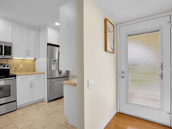 CORNER This property features all high-impact windows and a glass-enclosed patio that opens to the living area. Surrounded by water on every side, the patio faces east. The interior has been remodeled, with no carpet; laminate /vinyl flooring throughout. The kitchen and living room boast granite countertops and recessed lighting (hi-hats), SS Appliances, while all windows are fitted with plantation shutters. Be sure to see all the photos, then come see it for yourself!