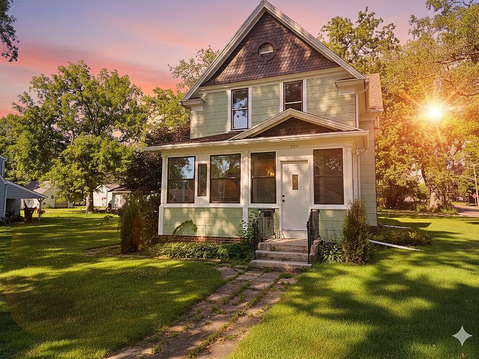 Updated home on a large double lot blends style and function. Features a renovated interior with high-end finishes, a premium kitchen, elegant bathrooms, a versatile 3-season room, spacious living/dining areas, and a bonus room/5th bedroom. The upper level includes three bedrooms (master with walk-through closet/extra bedroom) and a modern bathroom. Basement and attic offer extra space. Enjoy the double lot and a 2-car garage. Move-in ready with modern flair.