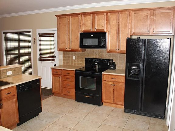 This home has all the beautiful details you want without the large price tag! This home features a gorgeous open floor plan with an extra large kitchen that boasts top of the line appliances, upgraded fixtures, and gorgeous cabinetry. The dining area features stunning hard laminate flooring and beautiful lighting. The large open great room has a corner fireplace, built in tv space above, and crown molding. The master bedroom features a box ceiling with crown molding, walk in closet, and ensuite bath with a large garden tub/shower. This home also has two more good sized bedrooms and a large guest bath. Outside you will find a one car carport and a nice covered porch. With a oversize lot that is great for kids or dogs.