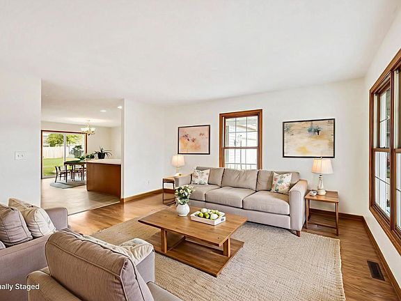 Showings Begin 10/18. A RANCH READY FOR EVERYDAY LIFE! This inviting 3 bed, 2 bath ranch welcomes you with a bright living room featuring LVP floors that extend through the bedrooms. The functional kitchen flows seamlessly into the dining area, which opens to the large backyard, perfect for outdoor entertaining or play. The primary bedroom offers a walk-in closet and private ensuite, tucked on the opposite side of the home for added privacy. Two additional bedrooms provide plenty of storage and share a full bath. The partially finished basement adds flexible living space and opportunity to expend while the main-level laundry and 2-car garage offer convenience for everyday living.