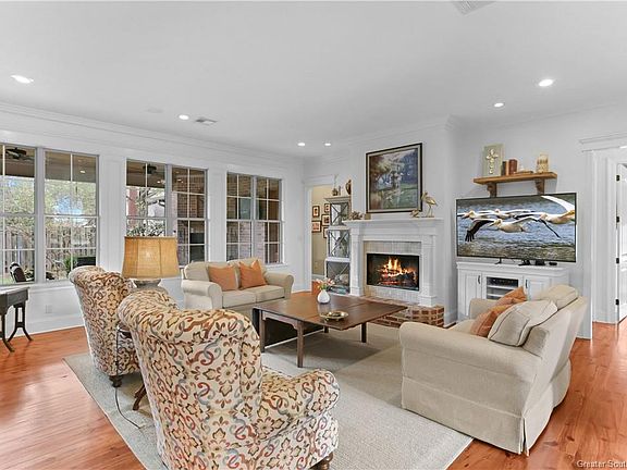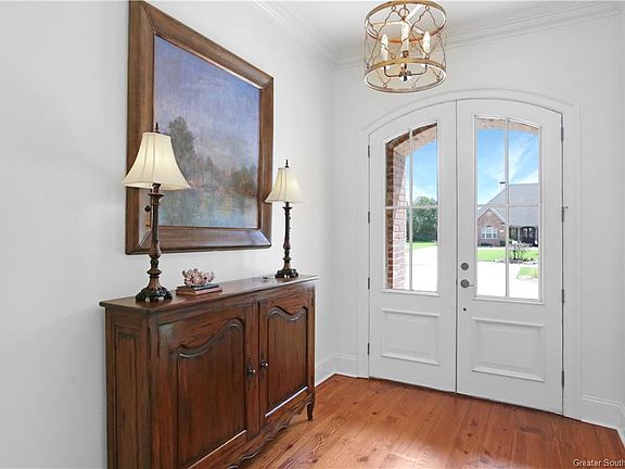 Step into this stunning L'Francois Estates residence, nestled in the privacy of a peaceful cul-de-sac. The main floor of this spacious home features 4 bedrooms and 4 bathrooms (3 ensuite). There are two office spaces, one being a separate office or 6th bedroom, perfect for someone working from home. All the gorgeous old cypress wood flooring, exterior doors and wood threshold beams were hand selected by the owners! Love to cook or entertain? You'll love the large gourmet kitchen with an oversized island, perfect for entertaining (and storage), a gas Thermador cooktop, pot filler, double ovens and a bar complete with a beverage fridge and wine rack! Prefer grilling and entertaining outside? The patio is a perfect addition to your entertainment options complete with an outdoor living area, wood burning fireplace and cooking area with gas, electricity, and water hooked up already! Multi-source surround sound runs throughout the living room, office, master suite and patio. After an evening of entertaining, relax in your oversized primary suite with a large sitting area. The primary bath is any homeowner's dream with two doors entering, there are separate vanities along with his and her toilets. The large custom primary closet features built in storage, adjustable shelving and cabinets. Upstairs offers a huge bedroom/bonus room with 6 built-in bunk beds, built in storage, a walk-in closet and a private full bath. In addition to the bedroom space, the room is large enough for a game/play table and workout space! Be sure to check out the adorable children's alcove in the bonus area behind the sliding barn door! The massive walk-in attic has plenty of room for storage...and I mean massive!! It stays comfortable year-round with sprayed foam insulation. Discreet wall vacuum ports are throughout the entire home making cleaning effortless. The garage is also equipped with a vacuum port for cleaning vehicles and will accommodate large vehicles. The owners lovingly crafted this home with meticulous attention to detail with a local architect. Truly a one of kind and a must see! It is located in Flood Zone X which typically indicates flood insurance is not required.