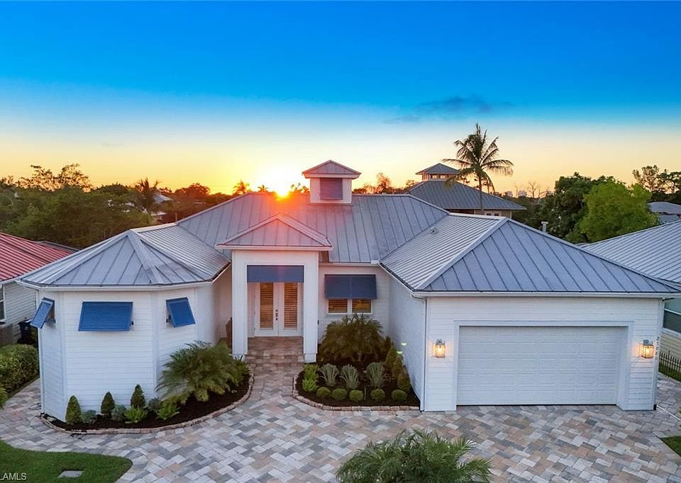 Stunning Custom Home with GULF ACCESS in Paradise Village, a charming private, gated enclave of 40 “Olde Florida” style homes situated along the Imperial River. Walk right onto your boat in your backyard with access to the Gulf of Mexico via the Imperial River, Western exposure grants gorgeous natural light with breathtaking sunsets. This high elevation single-story home has a fantastic open floor plan perfect for waterfront entertainment with a 34’ x 11’ screened lanai plus a pavered patio area pre-plumbed for an outdoor gas kitchen and includes 2090 square feet of living area with 3 bedrooms and 2.5 baths, soaring 10-14 ft. ceilings and a sun-dappled cupola with transom windows. The chef’s kitchen offers solid maple cabinetry, granite counter tops & backsplash, a spacious pantry & Thermador Pro series stainless steel appliances including double wall ovens and a 6-burner gas cooktop. Other features include high elevation (no flood water in this home), all impact windows, 500-gallon buried propane tank, 2023 whole house generator, metal roof (2014), 24” porcelain tile flooring throughout, plantation shutters, solid core doors, an extended boat dock with 7,000 lb lift new motors in 2023. This immaculately maintained home is fully move-in-ready and being sold as-is with right to inspect. Incredible location near downtown Bonita Springs offering a food truck park, live music, many locally owned restaurants, festivals/events, and a new library. 10 minutes to SWFL’s best beaches.
