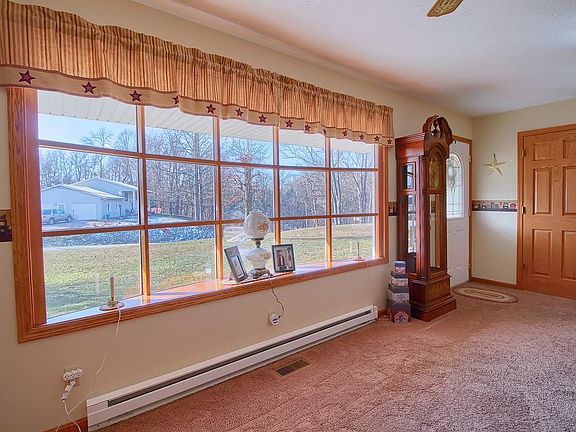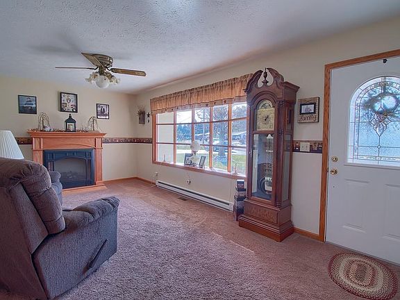 WOW! Loads of upgrades throughout this home. All new within the last 6 years are oak cabinets, windows, siding, roof. HVAC system is 8 years old. Living room w/fireplace and spectacular window to let in all of the natural light. Updated kitchen with plenty of cabinet space and all appliances. Three bedrooms, two full baths. Spacious finished lower level with fireplace. Wait until you see the 40x40 outbuilding w/half bath, kitchen area, separate workshop area and a covered patio. Great for a car enthusiast, crafts or a home business. Stunning views on this 2 parcel, 1.6 acre lot. Shed to the right of the outbuilding belongs to a relative and generator will be removed prior to closing. Close to highway,shops and parks. Additional parcel number 05.00619.01000