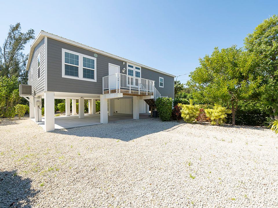 Peaceful is the word to describe this 3 bed 2 bath home situated on a double lot on a quiet dead-end street within walking distance to Boondocks restaurant. Home is only 2 1/2 years old and has been a second home, so has been very lightly used. Has a large split floor plan with features such as 9' ceilings, stone countertops, luxury vinyl plank floors, impact doors and windows, separate laundry room and pantry, and stainless appliances. Outside you will love the full concrete slab under the home, composite decking on front and rear porches, metal roof, legal downstairs storage enclosure, and lush native tropical landscaping. Built to the latest code, this home qualifies for the best insurance rates possible and is located just a short drive to Key West.