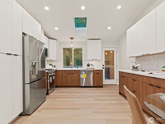 Welcome home to this newly remodeled home on large and private lot, featuring modern open floor plan with contemporary design. Bright and cozy living spaces, vaulted ceiling, plenty of natural lighting from windows and skylights. Brand new kitchen with high-end finishes, new appliances, quartz countertops. Designer bathrooms with heated floors. Situated in the prestiguous Lake Washington School District. Enjoy an easy commute to Redmond, Issaquah, parks, great restaurants and amenities all located nearby.