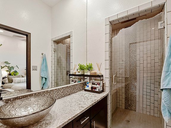 Welcome to this Beautiful Contemporary Home Conveniently located in Rio Rancho. This 3321 Square Foot Home has 4 Bedrooms (2 Masters) and a possible 5 Bedroom/Office. You will Love the Chef's Kitchen with Island and Upgraded Stainless Appliances.. even a Wine Fridge! The Living Room opens to the Covered Patio with 2 way Fireplace. This Gorgeous Home has a 45'' RV Garage + Oversized 2 Car with Heated Floors. There is Radiant Heat through-out the Home plus a Gas Furnace and Refrigerated Air. Outdoors a Walled Yard with Synthetic Grass Area and Xeriscape Courtyard Area plus a Wonderful Shade Pergola to Sit and Enjoy the Views both Day and Night. ... More info listed in Features Sheet.