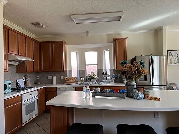 Large 5 Bedroom home with space to stretch out. Open kitchen with extra large island, Gas Cooking, separate Dining and Office Space. Spacious primary bedroom downstairs, 4 bedrooms up with big Game room or Leisure Space. Measurements are APPROXIMATE, measure if important.
