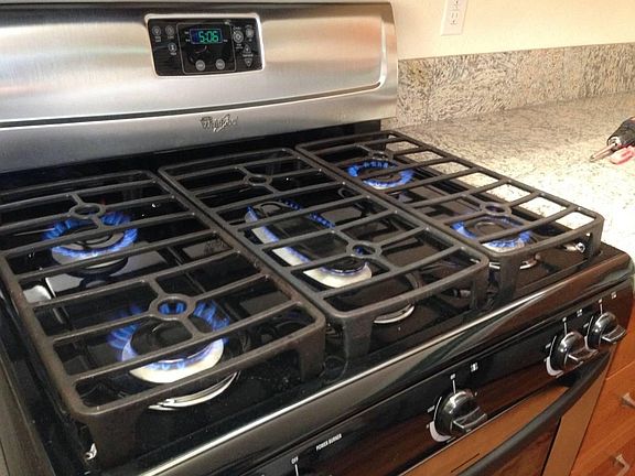 * Large gourmet kitchen with stainless steel gas range and stainless steal dishwasher and refrigerator