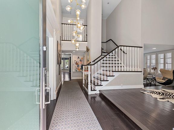 A stunning 5 bed, 6 bath, 5,020-sqft gabled home secluded away in the coveted Beverly Hills! From a picturesque exterior behold a pristine abode, which was fully renovated in 2019, featuring modern fixtures, dark laminate floors, and elegant accent moldings throughout. Be greeted first by a dynamic formal living room showcasing a tall ceiling with recessed lights, a large bay window that makes for a cozy seating nook, and a raised hearth fireplace set into glossy stone. Elegant wainscoting and crown molding styles the formal dining room as the space is awashed with sunshine from the large windows. An intimate step-down lounge enhanced by a stone fireplace plus a built-in wet bar with wine rack leads into the mellow family room and open breakfast area. Glossy quartz adorns the built-in cabinetry and center island of the gourmet kitchen equipped with all stainless-steel appliances. The unique artistry of the homes' center chandelier illuminates the stairs before journeying up to the second floor to find each large bedroom complete private bathrooms and a game room. The primary bedroom delights in a private balcony & an en-suite bathroom enhanced with a gorgeous dual sink vanity, ample built-in storage, a glass walk-in shower, and a beautiful freestanding tub that's the hallmark of relaxation. The delightful backyard has a covered patio, luscious grassy areas, and a glittering pool with spa to create a splendorous escape to enjoy effortless entertaining and serene relaxation!