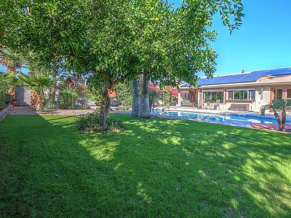 COME QUICK TO SEE THIS 3 BEDROOM 2 BATH HOME WITH DESIGNER TOUCHES. DESIRABLE FLOOR PLAN. GREAT ROOM W/FIREPLACE THAT OPENS TO YOUR REMODELED KITCHEN, NEWER CABINETS WITH GRANITE COUNTER TOPS, S.S. APPL., SMOOTH TOP COOK TOP WITH S.S. RANGE HOOD. NEWER WALL OVEN TOP OF THE LINE SELLER PAID OVER $4,000. NICE EAT IN KITCHEN THAT LOOKS OUT TO YOUR LARGE PRIVATE BACK YARD.CITRUS TREES, GREEN GRASS,STONE AND WONDERFUL SHADE TREES. POOL HAS BEEN REMODELED WITH GLASS SQUARE TILE AROUND THE POOL EDGE AND ALSO INSERTED ON STEPS. SOLAR POOL COVER IS NICE FOR THOSE FALL DAYS. YOU HAVE MORE MONTHS TO SWIM. GREAT BACK YARD FOR ENTERTAINING. THE HOME ALSO HAS A FORMAL LIVING AND DINING ROOM. NEWER LIGHT FIXTURES THROUGH OUT THE HOME. BOTH BATHROOMS HAVE NEWER VANITY'S AND LIGHT FIXTURES. CLICK MORE TAB