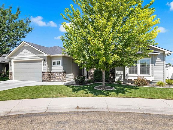 This impeccably maintained 3 bedroom, 2 bathroom home offers the perfect blend of style, comfort, and accessibility. Located just minutes from the Caldwell YMCA and Indian Creek Plaza, this home offers both convenience and a serene living environment. Designed with wide hallways and spacious doorways, it features no step entry for easy accessibility. The open concept kitchen, great room, and dining area create a fantastic space for entertaining. The upgraded stone fireplace with built-in cabinetry, slab granite countertops, and luxury carpet with premium padding elevate the home’s design. The kitchen is a chef’s dream with pull-out drawers, an extended pantry, and a refrigerator included. Enjoy year-round relaxation on the large covered back patio. With an extended 2 car garage providing ample storage, this home has everything you need. Meticulously cared for, it feels better than new, schedule your showing today!