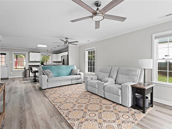 5 bedrooms, 4 baths built in 2024, this beautiful home offers approximately 2,220 sq. ft. of thoughtfully designed living space, conveniently located within minutes of restaurants, shopping and entertainment. Step inside to an open, light-filled floor plan featuring a stylish kitchen w white cabinetry, black granite counters, tile backsplash, a large island w bar seating, spacious pantry—plus a reverse osmosis water filtration system. The adjoining living/dining areas flow seamlessly together. Durable LVT flooring throughout the main level. Bedroom and full bath also on the main level, perfect for guests or home office. Primary suite upstairs w two closets and a private bath w double sinks, a tub/shower combo and linen closet. Two bedrooms share a Jack-and-Jill bath, fourth bedroom w its own private bath. Upstairs laundry room, ceiling fans, pull-down attic, and carpeted bedrooms for comfort. Outside, enjoy a covered back porch, privacy fence, RV pad, and attached two-car garage.