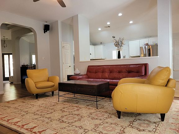 FULLY FURNISHED and ready to move in, charming white limestone home that backs to remarkable greenbelt in a coveted neighborhood! Crisp clean walls, wood floors, lots of natural light & plantation shutters throughout make this home feel inviting & tranquil. Huge island kitchen opens up to family room, formal dining & dedicated study. Retreat to the exquisite master w/ walk in closet & a double vanity bath. Make outdoor entertaining a breeze w/ a massive patio that looks out over the greenbelt! Excellent amenities!