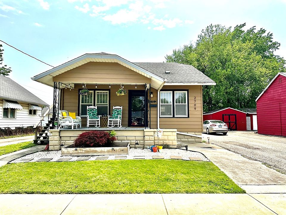 Check out this beautiful well kept property preserved just for you! If you are looking for a 2 bedroom/1 bath home with an outside stairway heading up to a studio apartment, THIS IS FOR YOU! The kitchen includes navy painted cabinetry with stainless steel appliances, plus a nicely sized pantry. Enjoy the family room with large windows allowing an abundance of natural sunlight. Flooring consists of original hardwood with ceramic tile. The unfinished basement has the laundry plus plenty of storage. The upstairs spacious studio offers white appliances and window a/c units, has its own electrical panel. The driveway leads back to a 1 car detached garage with a 24x24 carpeted area that is heated, perfect for a workshop area or more storage. Last is the cute and cozy patio with a large backyard! Seller prefers to sell "as is".