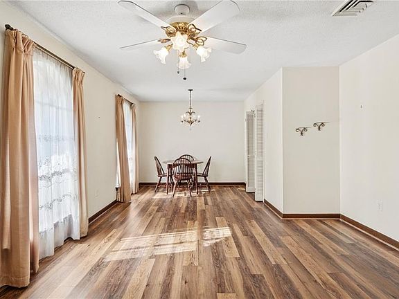 Screened patioWood-look vinyl planksLarge denBreakfast area