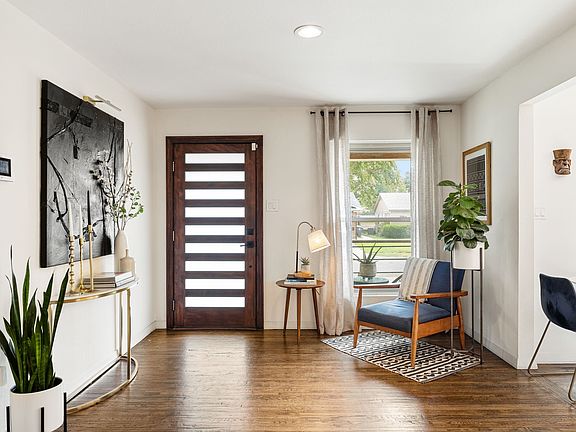 Tucked in Casa View, this home blends its original character with thorough function, thoughtful design and magazine-worthy finishes. The oak hardwood floors set the tone, running through much of the home and grounding the light, Danish modern–inspired kitchen. Custom milled cabinetry, crisp white quartz counters, and a porcelain backsplash frame this space. The picture window floods the kitchen and dining area with natural light—it’s the kind of spot that practically begs for houseplants or a kitchen garden. A large island with storage and a coffee bar add both function and charm. The dining room stretches along one wall, offering flexibility whether it’s a weeknight dinner or a Thanksgiving spread with the table fully extended. Truly, this is the dream situation for hosting. Beyond the dining area, a sunken living room with a gas fireplace makes for an inviting retreat—cozy in the best sense. The home offers three bedrooms, including a corner primary suite that enjoys natural light from two sides. Its bath is a true standout, with walls of tile that span the full frameless glass, walk-in shower. The double vanity is customized with raised sinks, wall-mounted faucets and brass accents. Secondary baths follow suit with their own custom finishes—each space designed with intention rather than a template. The powder for guests is nothing less than exceptional. Compliments of the current owners, the backyard was completely reimagined, and outfitted with maintenance-free turf and a deck living area that connects seamlessly to a second outdoor lounge via pavers that anchor the spaces together. String lights are already in place, creating a turnkey setting for evenings outdoors. Hello, housewarming party! Along with stylish updates, this home includes an attached 2-car garage, and the renovation completed about five years ago extended to major systems, windows, and the roof—providing peace of mind to match the warm and polished vibes at 2709 Province.