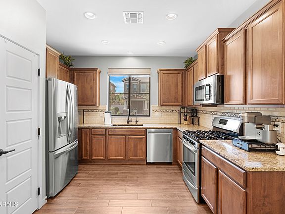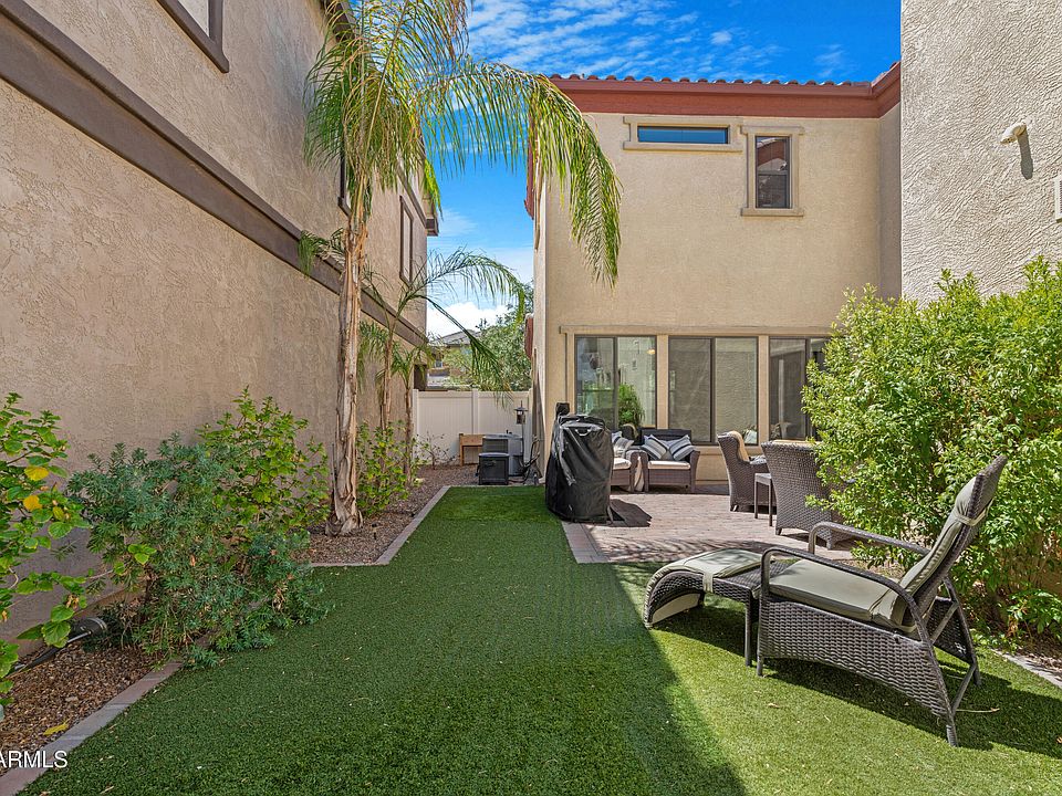 Enjoy Arizona living outdoors in the fully finished backyard with an extended paver patio, lush landscaping, and room to relax or host guests.