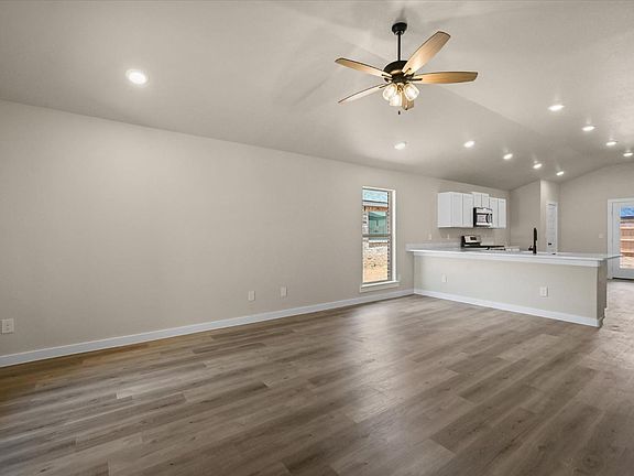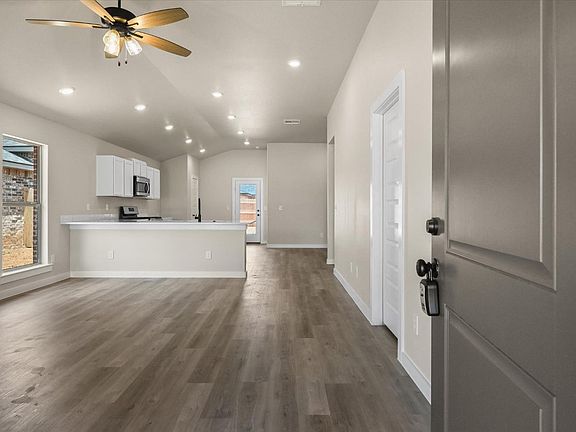 Buy NOW and get up to $10,000 FLEX CASH! Brand-New, Move-In Ready Home! This charming 1,550 sq. ft, 3-bedroom, 2-bath home welcomes you with an all-brick exterior and front porch. The open concept is ideal for family gatherings, with a spacious living and dining area. The kitchen peninsula provides additional seating options with plenty of counterspace. The primary suite boasts a large walk-in closet complete with ample built-in shelves and a walk-in shower. The home also features an LG gas range in the kitchen and brushed gold vanity light fixtures. The covered back patio is perfect for relaxing and enjoying the beautiful West Texas evenings.