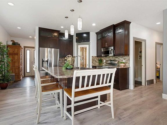 Welcome to this executive style family home located in the highly sought-after Valleyview subdivision in Camrose. Tucked away in a quiet cul-de-sac and just steps from miles of scenic walking trails and the peaceful Valleyview Pond, this stunning 6-bedroom, 6-bathroom home offers 2,476 square feet of thoughtfully designed living space in one of Camrose’s most vibrant communities. From the moment you step inside, you’ll be struck by the natural light pouring in through large windows that surround the main floor living space. The expansive living room, anchored by a beautiful gas fireplace, flows seamlessly into a spacious dining area and a kitchen designed for busy family life, complete with a large island perfect for food prep or after-school snacks & a walk-thru pantry that leads to the garage. Off the living room, patio doors lead to a huge deck overlooking your massive fenced backyard, an ideal spot for summer entertaining or quiet relaxation. Also on the main floor, you'll find two generous bedrooms, each with its own private ensuite, offering great flexibility for guests & family members. A convenient two-piece powder room and main-floor laundry are located nearby for added ease. The main entry and garage entry are both spacious the triple garage not only has room for 3 vehicles to park it also has extra workshop & storage space! Always dreamed of having a primary suite? This 2nd floor primary bedroom serves as a luxurious retreat. At the top of the lit staircase is a bonus sitting area connected to the spacious bedroom with an absolutely gorgeous double-sided fireplace shared with a spa-like 5-piece ensuite. Here, you can soak in the tub while enjoying the warm ambiance of the fire. The ensuite also features a walk-in shower, private toilet room, and a large walk-in closet. The fully finished basement is perfect for entertaining, game nights, or family movie marathons. It features a wet bar, score lights, shuffleboard, and plenty of room to unwind. Three additional bedrooms are located downstairs—two connected by a stylish 5-piece Jack and Jill bathroom, and a third with access to a nearby 3-piece bath. A second laundry area adds incredible convenience for busy households or overnight guests. The basement also includes heated floors, keeping things cozy year-round. Outside, the triple attached garage offers ample storage, while the extra parking out back provides room for your RV, boat, or both. The expansive, fenced backyard is ideal for large family gatherings, backyard games, or simply enjoying the outdoors in privacy and comfort. Additional features include hot water on demand, central air conditioning to keep you cool in the summer, and a truly unbeatable location. With space, luxury, and a prime Valleyview address, this one-of-a-kind property is sure to impress & ready to welcome its next family.