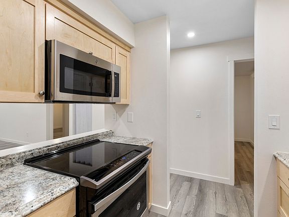 COMPLETELY REMODELED!! This fresh 2 bedroom, 1.5 bathroom condo is entirely brand new inside. High-quality Smart Core laminate flooring throughout in Woodford Oak finish. The kitchen boasts brand new, stainless steel appliances & custom Maple cabinetry. All new drywall, paint, trim, recessed lighting w/ dimmers, doors and jams throughout the unit. Full bathroom in hall features quartz countertop, subway tile tub surround, and the cabinetry matches the kitchen. Stacked washer & dryer in the unit. Beautiful fireplace and new cove high efficiency radiant heater bars. Brand new water heater with emergency shut off with alarm & battery back up. Easy access to I-5, bus line, shopping, downtown and the waterfront. Text ONLINE to 59559 for special financing or to schedule a private tour!