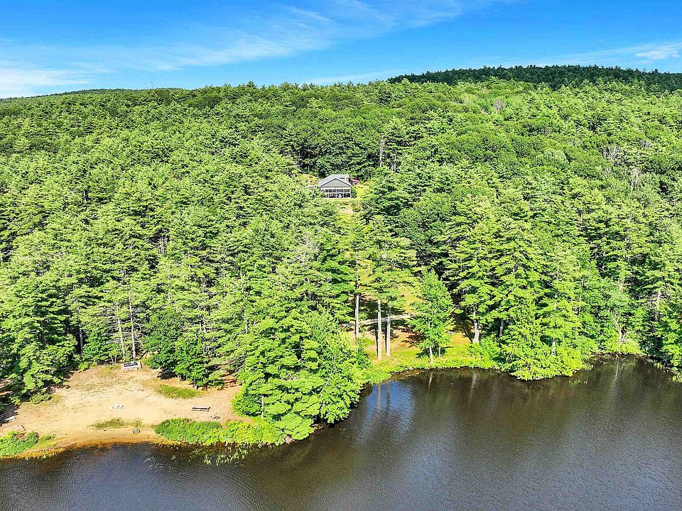 It’s not often that a property with this much to offer becomes available. Welcome to Waterloom Pond! Consisting of two year-round residences on 45 +/-acres, sandy beach, and 1,300 feet of water frontage including an additional waterfront building lot. The main house has a contemporary feel with 3 beds and 4 baths. A sun-filled open concept main level allows for a seamless flow to the expansive screened porch that overlooks the water, perfect for entertaining. A spacious granite kitchen with walk-in pantry, Custom wood floors, 2 updated baths, second floor bedroom with en-suite bath and office, and a fully finished walkout lower level allows for ample space and privacy for family and friends. An attached 2 car garage and detached barn provides plenty of room to store everything from gardening supplies to water toys. The barn offers a finished space which could be a wonderful studio or gym. In 2015, a 2 bed, 1 bath Timber frame home was built at the water’s edge and is accessed from a separate driveway. The quality and attention to detail is apparent throughout, from the beam work, spiral staircase, and tiled bath, the design is truly exquisite. Enjoy the peaceful water right outside your door and spend your days kayaking, fishing, and hiking through your private sanctuary. The ideal year-round residence or country retreat. Be sure not to miss this rare opportunity!