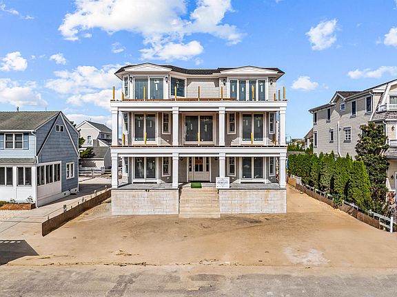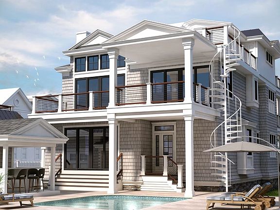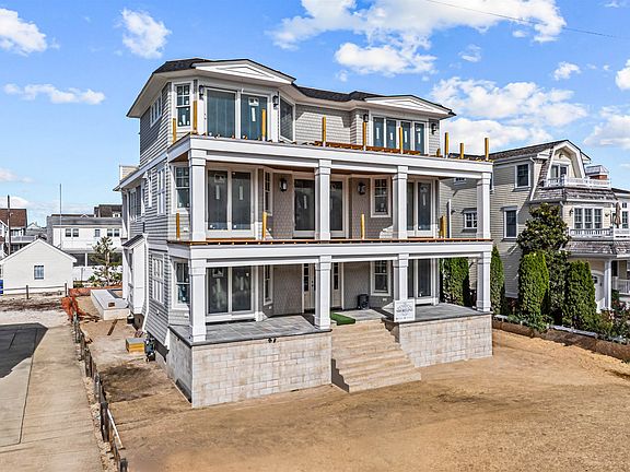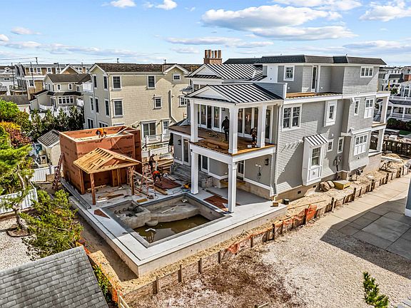 Brand new, custom, single-family home, located in the sought-after south end of Avalon, just steps from an incredible beach. This expansive property spans 4,620 sq. ft. on a 60X110 ft. lot, featuring 6 bedrooms, 7 bathrooms, and 2 powder rooms plus high-end appointments throughout the entire home. Strategically located just one cross street off the 70th Street beach path, the home offers sweeping ocean views from the second and third-floor decks, complemented by bay and sunset views due to its prime position overlooking a dead-end street towards the bay. The exterior is elegantly clad in Maibec Cedar shake with a standing seam metal accent roof. All exterior decks are finished off with IPE decking. Leading up to the front door, a large front deck will be finished in bluestone. Inside, the home features an extensive trim package with wainscoting, shiplap, and shadow boxing throughout. Villa Borghese aged French Oak hardwood flooring will run throughout the home. The first-floor layout includes 4 ensuite bedrooms, a laundry room, and a powder room accessible from both the sunken family room and the pool deck. A custom-milled white oak bunk room is finished with shiplap walls. The adjacent family room boasts an expansive wet bar, outfit with a copper hammered sink, beverage fridge, ice maker and cabinet storage with floating shelves in a marine lacquered finish. Outdoors, enjoy a luxurious pool with a hot tub, sundeck, cabana, and plenty of room for seating on this 60FT wide lot, an ideal retreat for relaxation after a beach day. Additionally, the detached garage offers convenient storage for beach and pool essentials. The intricate design of this home is felt while ascending to the 2nd floor, greeted by a grand kitchen and family room area, with a family room featuring vaulted ceilings adorned with encased beams and tongue-and-grove white washed ceiling. 9FT ceilings run throughout this entire floor, a unique feature not seen often in Avalon. The kitchen is centered around a large island with stone countertops, surrounded by premium cabinetry and a panel-ready appliance package including a 48-inch Wolf range, Subzero refrigerator, cove dishwasher, and Wolf microwave. Adjacent to the kitchen, the wet bar is equipped with Sub-Zero refrigerator drawers. A discreetly located butler’s pantry includes additional Sub-Zero drawers and an ice maker, conveniently tucked away from the entertainment areas. Situated overlooking the pool and backyard, an expansive rear-covered deck makes for an incredible location to dine outdoors, while the front deck allows for breathtaking ocean and bay/sunset views. A dedicated office is located toward the front of the home on the second floor, with a 5th ensuite bedroom located across the hallway with an additional powder room. The third floor is completely dedicated to the master suite, which includes a separate workout room and a full ensuite bathroom featuring a steam shower and access to a private outdoor shower. A conveniently placed coffee bar and Sub-zero refrigerator drawers enhance the master suite’s comfort. Access to the front deck is also found through a set of sliders, enhancing the incredible water views. The home is serviced by a 4-stop elevator providing access to all levels, and the residence will be sold professionally and tastefully furnished and decorated by Proximity Interiors, making this completely turnkey and ready for Summer 2025. Call today to schedule a private showing.