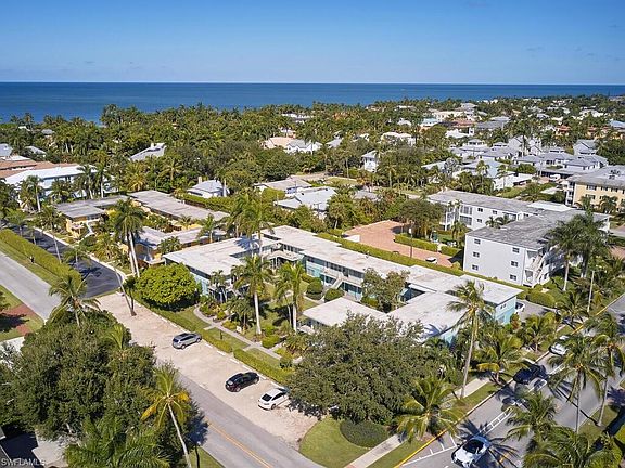 High and Dry, charming Beachside Retreat in Heart of Old Naples. Discover this cupdated 1-bedroom, 530-square-foot second-level condominium, perfectly nestled just two blocks from the pristine beaches of Naples, and in close proximity to all that 3rd St. S, and 5th Ave S have to offer. Begin each day with a community walk, as unit is in the heart of Old Naples. Enjoy the ultimate blend of coastal relaxation and urban convenience in this desirable location. This property features one spacious bedroom, with ample natural light, full bath, a galley kitchen, and dining area, and is offered turnkey. Unit has hurricane impact windows, new floors, countertops and much more! Additionally there is community laundry located close to the unit with two washers/dryers, a private storage cubby, and bike racks. Community reserves are well funded. Recent community updates include exterior painting, new soffits, gutters, pavers, all new irrigation system, and updated landscaping. Perfect for investment as unit has 9-year rental history, or use as a conveniently located guest space. No water intrusion during any of the tropical storms.