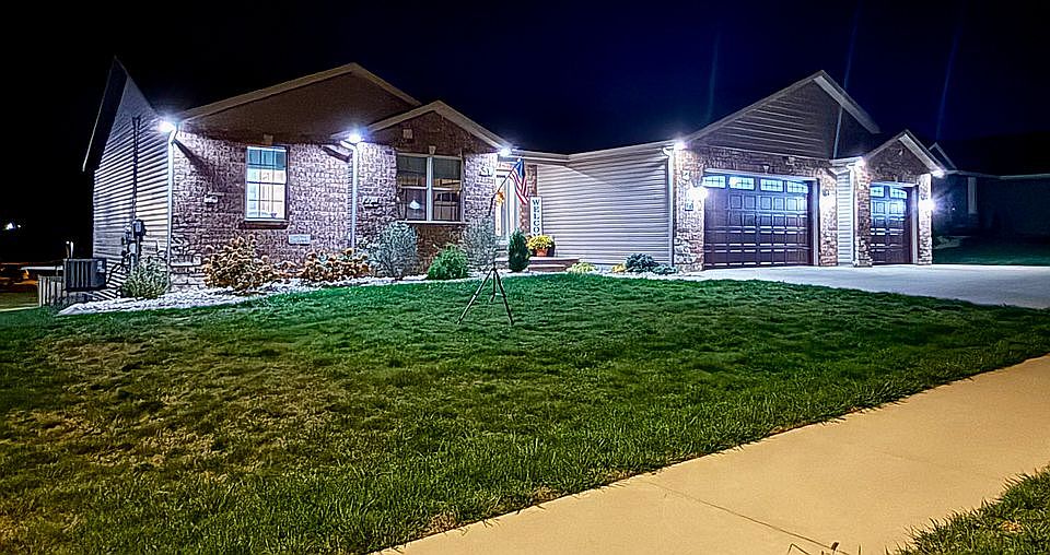 Newer high quality constructed maintenance free home built in 2021. Quiet neighborhood, rural subdivision, with amenities nearby to include shopping, the Korte Rec Center and restaurants. The solar panels are a huge selling point since our electric bill averages around $16.14 per month! Vinyl fenced in backyard, landscaping, extra parking area, walkout basement, newer luxury vinyl plank flooring, storage areas etc…. Basement is plumbed for a fourth bathroom if desired. Master bedroom, spare bedroom and living room have cathedral ceilings, basement has 9’ ceilings that walks out to a concrete patio. Added onto the porch with wide stairs leading from the deck to the basement. Buried gutter drain downspouts and upgraded high Seer A/C condenser. Kitchen appliances are negotiable. Both Liftmaster garage door openers are the commercial jack shaft style with no unit mounted to the ceiling. Kitchen cabinets have soft close drawers and kitchen has a large walk-in pantry.