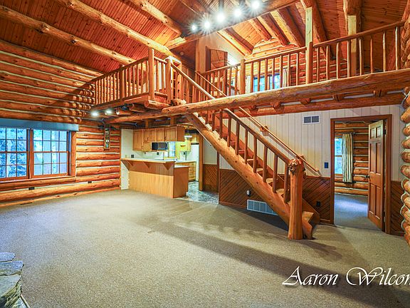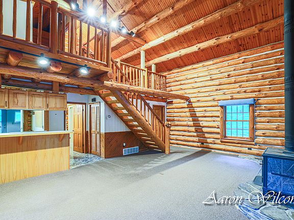 Make log home living part of your lifestyle today, or turn this charming house into an Airbnb! This 2 bedroom 1.5 bathroom home features a high vaulted ceiling in the living room and dining room, a wood-burning stove, and the unique log staircase is a show-stopper! The spacious loft area features a bedroom and a half bathroom. The landing fits a twin-size bed for an additional sleeping option. This hand crafted-home has remarkable privacy and is conveniently located near Apple Ave., 1 mile from the 3.5 square mile (all sports) Wolf Lake, and 15 miles from Michigan Adventures or Muskegon State Park. Take advantage of the unused .75 wooded acres where a dream pole barn could easily house all your tools and toys.