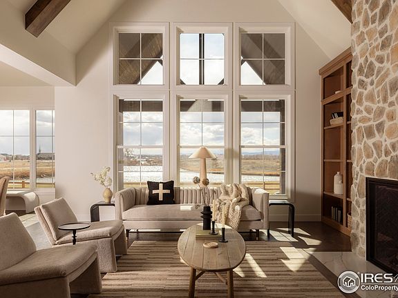 Wake up to foothill views and the calm of a canal just beyond your backyard in this thoughtfully designed Greenspire at Windsor Lake home. Set on a rare garden-level lot, it offers privacy and walkability with Windsor Lake, trails, and downtown shops all close by. From the covered deck, enjoy golden sunsets and water views, or start mornings with coffee and mountain scenery.Inside, new construction convenience meets timeless style. Vaulted ceilings with beams, black-framed windows, and a fireplace with custom built-ins create a bright, welcoming main level. Neutral tones, natural textures, and bronze fixtures add depth and refinement.The gourmet kitchen features custom cabinetry, a furniture-style island, quartz countertops, and a 48" dual-fuel range. A large butler's pantry keeps the space uncluttered and ideal for entertaining.A private study with glass doors offers space for work or hobbies. The main-level laundry includes a folding station, sink, cabinetry, and a chute from upstairs.Upstairs, bedrooms surround a loft that opens to the level below. The primary suite is a retreat with spa-inspired finishes, furniture-style vanities, a freestanding tub, and oversized shower. Secondary bedrooms share a Jack-and-Jill bath, keeping the layout functional.The finished basement adds a wet bar, rec room, and guest suite with full bath. Above-grade windows bring in natural light, creating an inviting extension of the home.A finished 3.5-car garage provides ample room for vehicles and storage. Full landscaping and fencing complete this exceptional property.Schedule your private tour today and experience Greenspire at Windsor Lake living.