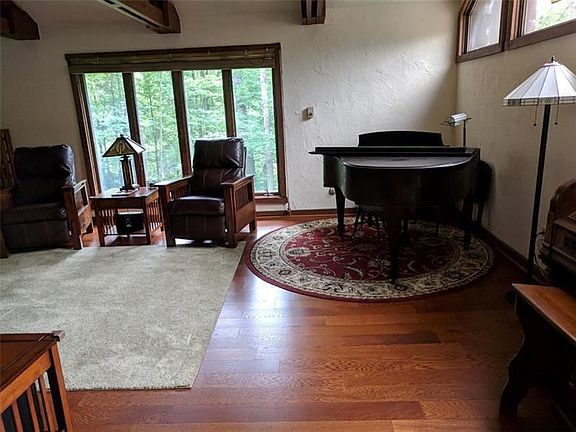 Escape busy, hectic days and come home to this 4 bedroom, cedar, multi-level home situated on 4 acres, surrounded by trees & beautifully landscaped property. Like your own personal oasis, this beautiful home features hardwood floors, 2 stone fireplaces, vaulted ceiling & beams, main level laundry, patios, decks, large 2 car garage, 2 full baths, 2 half baths, family room, bonus room or 5th bedroom, and game room. Marion Center School District.