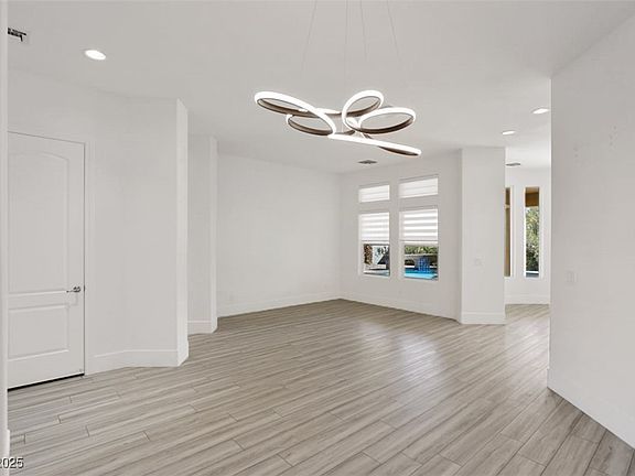 Explore the perfect family haven! This newly renovated home features a spacious lot with a private pool and an east-facing backyard, ideal for shaded afternoons, outdoor meals & summer enjoyment. Inside, you’ll find an open floor plan with stylish finishes & top-of-the-line appliances. Outdoors, there’s ample space for your recreational needs, including covered RV parking, a large driveway, & a detached garage with epoxy flooring, built-in cabinetry, a mini-split A/C, air compressor, 2x6 construction, and fully insulated walls and ceiling—perfect for storage, hobbies, or a potential game room. The west-facing front yard boasts stunning curb appeal and sunset vistas. Solar panels keep electricity costs below $100 annually, letting you enjoy comfort & savings. Conveniently located near the freeway and the Las Vegas Strip, this home is a dream for families who love outdoor living and entertaining. It also includes a separate office with French doors opening to a charming front courtyard.