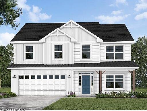 Exterior highlights include low-maintenance vinyl siding with board and batten accents, dimensional roof shingles, a spacious front porch, and a SW ''Pineapple Cream'' front door with smart keypad entry to the home.