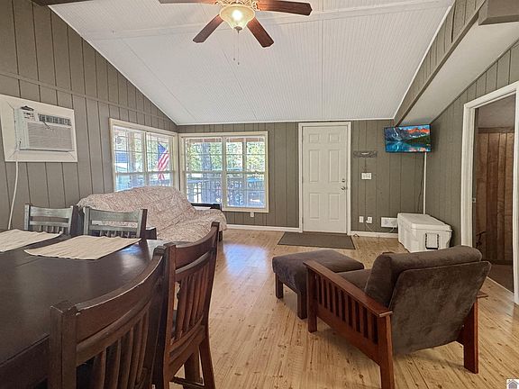 Lake Area Retreat! Just Minutes From Three Marinas On Beautiful Kentucky Lake, This Retreat Combines Rustic Charm With Modern Comfort. Featuring A Log-style Facade, Expansive Wraparound Deck, And A Peaceful Wooded Setting, It's The Perfect Escape For Nature And Lake Lovers Alike. Inside, The Open-concept Floor Plan Flows Seamlessly From The Family Room, Dining Area And Galley-style Kitchen. The Family Room With Large Windows Allow For An Abundance Of Natural Light And Wooded Views. With 3 Bedrooms And 2 Full Baths, There's Room For Everyone. The Spacious Primary Suite Easily Accommodates A King Bed, With An En-suite Bath Showcasing A Custom Tile Shower. One Secondary Bedroom Is Designed As A Bunk Room With Two Sets Of Bunks - Ideal For Kids Or Extra Guests. Out Back, A Large, Covered Deck Invites You To Relax, Entertain, Or Enjoy Your Morning Coffee Surrounded By Nature. Whether You're Hosting A Cookout Or Planning A Day On The Water, This Property Offers The Perfect Base.