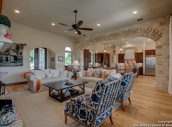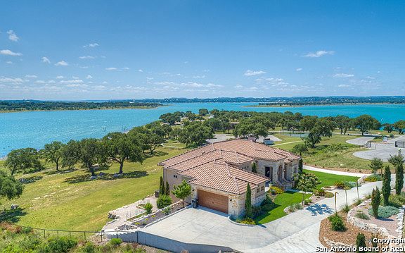 MAGNIFICENT ESTATE ideally positioned on 3 acres of premier, lakefront in Mystic Shores! Expansive floor plan, 2 islands, 2 pantries, farm & prep sink, 6 burner gas stove, built-in Thermador fridge, granite counters, SS appliances, tile & white oak flooring, office w/built-ins, exercise rm, 4 bedrms w/ensuite baths, master w/walk-in steam shower, speakers throughout, cameras, outdoor kitchens, water well, fountain, outdoor pavilion w/fire pit, extensive landscaping w/tree lights, walk-up attic space & more.