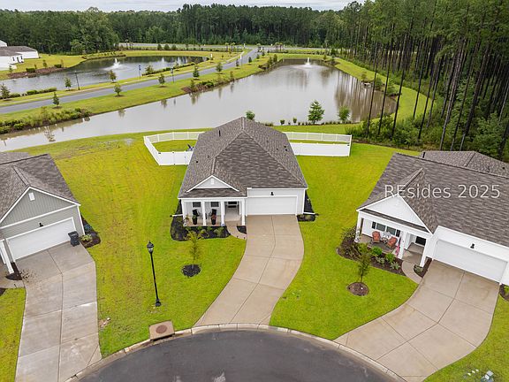 NOW Offering $4000 towards closing! Single Level home on arguably the most stunning cul-de-sac lot in the community. This 3 bed, 2 bath, 1618 sf, home features natural gas, quartz countertops, large island, and open concept floor plan. Everything is Here: fans, refrigerator, washer/dryer, 10 added light fixtures, gutters, security system, blinds all 2025. The screened porch with fan leads to the new grilling area with high end pavers. This home boasts a huge fenced in yard with direct views of the lake and fountain. Home is still under Warranty. The Retreat at East Argent offers a large pool, community pavilion, gym, walking areas, fire pit, and playground. Heartwood Community School is directly across the street. The YMCA is well under way and much more all near distance. Only 14 miles to Beaufort or Hilton Head, 7 miles to Bluffton.