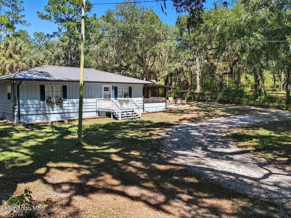 Welcome to your peaceful retreat on 1.54 acres! This beautifully remodeled 2-bedroom, 2-bath home is truly move-in ready and packed with features both inside and out. Step inside to find a modern, fully equipped kitchen with appliances, a center island, and a spacious butler's pantry—perfect for all your storage and prep needs. With two living areas, there's plenty of room for relaxing or entertaining guests. The primary suite includes a comfortable bedroom and a private bath, while the guest bedroom and second full bath with shower/ tub combo is ideal for family or visitors. You'll also love the oversized laundry room, complete with washer, dryer, and even more storage space. Enjoy your mornings on the back deck or unwind in the large screened lanai, where you can sip coffee and take in the peaceful surroundings. Outside, the property shines with an 18x28 building for extra storage or hobbies, and an RV hookup with water and sewer access—perfect for out-of-town guests or your next adventure. There's plenty of room for boats, ATVs, and toys. Located just 10-15 minutes from Lake Rousseau, the Withlacoochee River, Kings Bay, and the Gulf, this is a dream spot for fishing and boating enthusiasts. Come discover all the beauty and lifestyle the Nature Coast has to offer. This home is waiting for retirees, snowbirds and families.