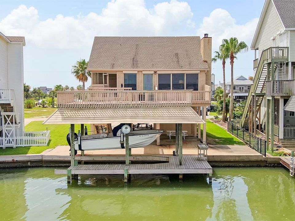 The view, the view, the view!!! Single story bayfront home 3 bedroom, 2 bath, open living dining room great for entertaining. Amazing sunsets will be the best part of your day while enjoying your favorite cocktail!! Located in the middle of Jones Bay with good fishing from the dock. Large area downstairs for entertaining. Part of the original family still own the home. All appliances & select content items will convey with the home, specifics can be discussed at time of contract. Golf cart for sale outside of closing. Make your appointment today!!